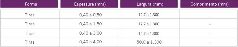 As tiras de aço inoxidável Aperam são fabricadas de acordo com  os dimensionais  especificados pelo clientes, proporcionando uma maior eficiência na produção, e reduzindo os desperdícios de material  em sua operação.