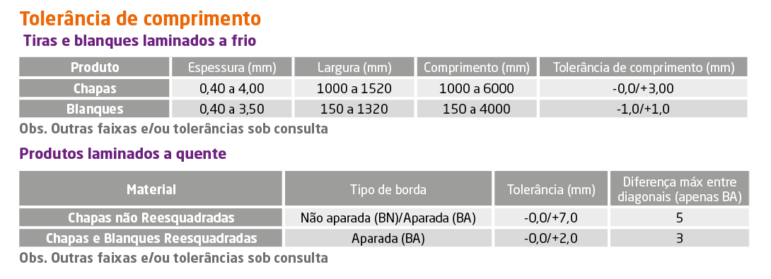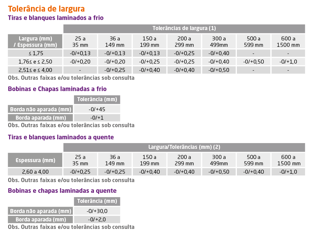 Cada produto acompanha um Certificado Qualidade contendo a composição química e propriedades mecânicas do aço conforme normas internacionais. Consulte nossos vendedores para mais informações.